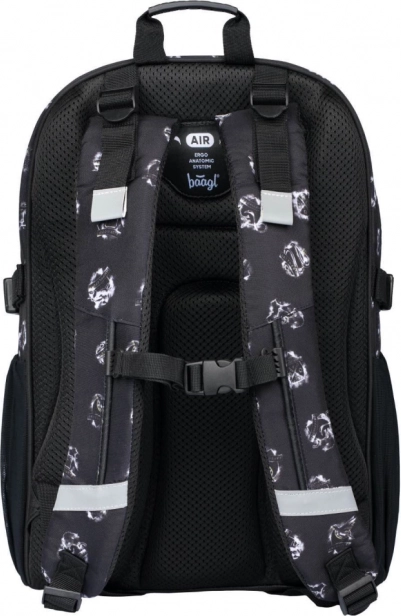 Plecak wykonano z trwałego, wodoodpornego materiału, posiada regulowane paski naramienne, piersiowe i boczne kompresyjne oraz dba o bezpieczeństwo dzięki elementom odblaskowym. Boczne kieszenie z siatki są idealne na butelkę, piórnik oferuje przejrzystą organizację przyborów, a worek można wygodnie nosić na plecach dzięki mocnym sznurkom.