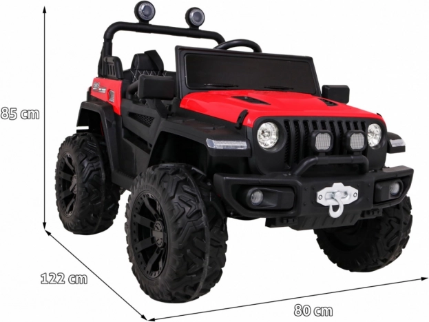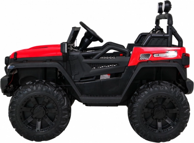 Elektryczne autko Master of Terrain 4x4 oferuje realistyczne wrażenia z jazdy w terenie. Dzięki zmiennemu napędowi 2×4/4×4, mocnym silnikom i dużym kołom EVA 35 × 15 cm poradzi sobie z nierównościami i trawnikiem. Zawieszenie przedniej i tylnej osi zwiększa komfort i stabilność, natomiast oświetlenie LED i wysokiej jakości pasy bezpieczeństwa dbają o bezpieczną jazdę.