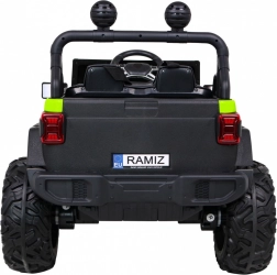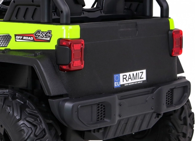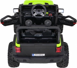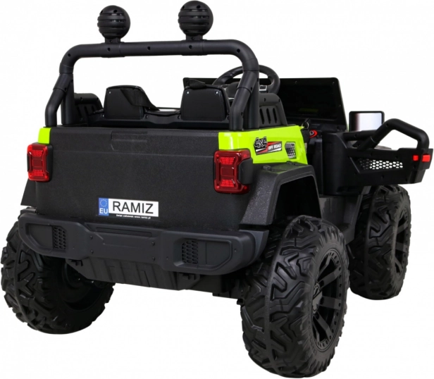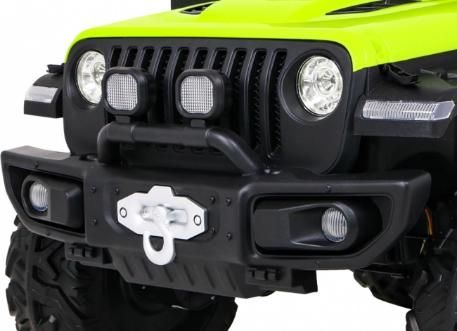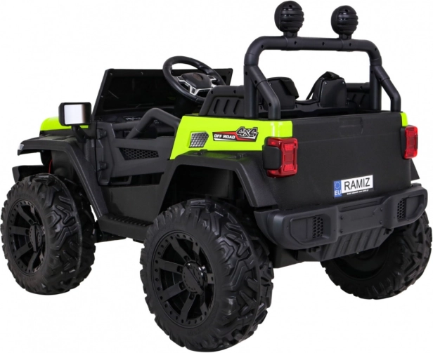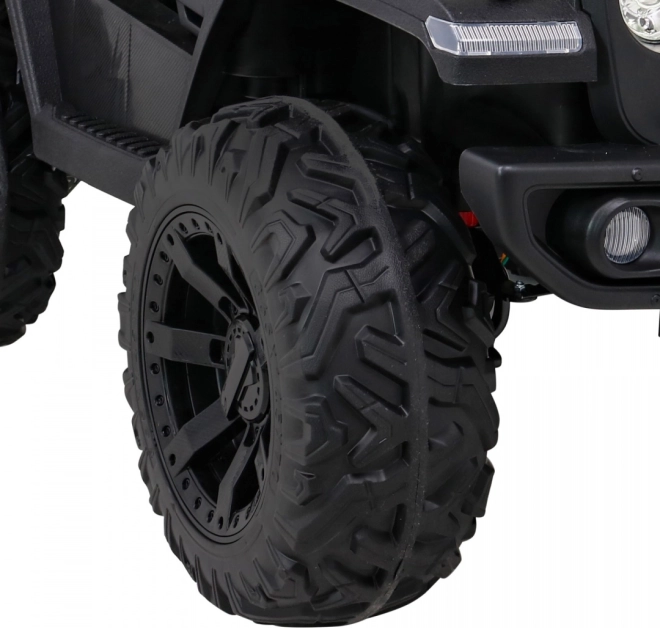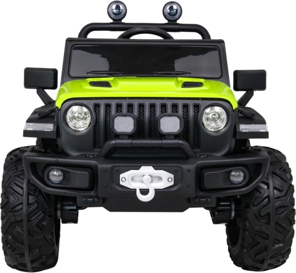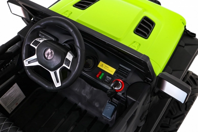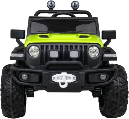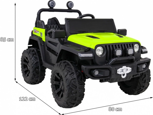 Solidny elektryczny samochód terenowy dla dzieci o mocy 4×35 W, z przełączanym napędem 2×4 / 4×4, dużymi kołami EVA i akumulatorem 12 V / 10 Ah. Oferuje płynny start, światła LED, zdalne sterowanie 2,4 GHz z przyciskiem bezpieczeństwa Stop oraz bogate funkcje audio (MP3/USB/SD/Bluetooth). Dwa siedzenia z wentylowanej eko-skóry i pasy bezpieczeństwa zapewniają komfort i bezpieczeństwo.
