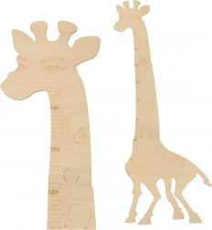 Stylowy dziecięcy metr w kształcie żyrafy z naturalnego drewna do śledzenia wzrostu aż do wysokości 125 cm. Świetna dekoracja do pokoju dziecięcego i praktyczna pomoc do codziennego mierzenia. Precyzyjne grawerowane podziałki oraz naturalna powierzchnia nadają wnętrzu ciepły, nowoczesny wygląd.