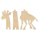 Poszczególne elementy precyzyjnie do siebie pasują i po złożeniu tworzą stabilną żyrafę gotową do przymocowania do ściany.