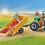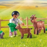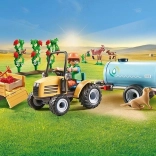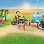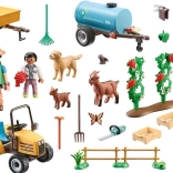 Zestaw zawiera: dwie figurki Playmobil, psa, dwie kozy, traktor z przyczepą, cysternę na wodę oraz wiele innych akcesoriów, które dodają realizmu opowieściom.
