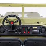 Odkryj realistyczną jazdę w duchu klasycznych pojazdów wojskowych. To retro wojskowe autko matcha 4x4 zachwyca solidną konstrukcją, miejscem dla nawet 3 dzieci (2 z przodu, 1 z tyłu) oraz komfortowymi siedzeniami z czarnej wentylowanej ekoskóry. Dzięki przełączanemu napędowi na 2 lub 4 koła, czterem silnikom 45 W i płynnemu startowi jazda jest pewna i gładka, a oświetlenie LED i autentyczne detale pobudzają dziecięcą wyobraźnię.