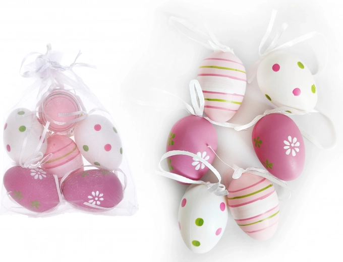 Te dekoracyjne plastikowe jajka są idealnym wyborem do ozdabiania domu podczas świąt wielkanocnych lub innych okazji. W każdym opakowaniu znajdziesz 6 malowanych jajek, które dodadzą twojemu wnętrzu radosnych kolorów i uroku.