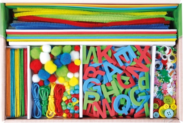 - Różnorodne materiały, takie jak papiery, pianka EVA, druciki kreatywne, guziki, oczka i wiele więcej.