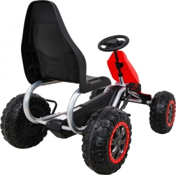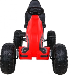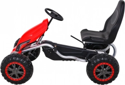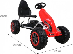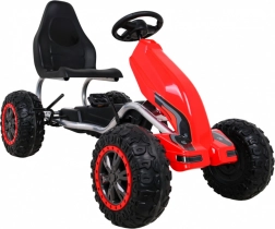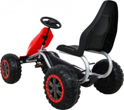Duży dziecięcy gokart na pedały w czerwonej wersji o sportowym designie oferuje wysoką nośność do 100 kg oraz koła EVA dla płynnej jazdy. Ten gokart gwarantuje mnóstwo zabawy dla każdego małego kierowcy.