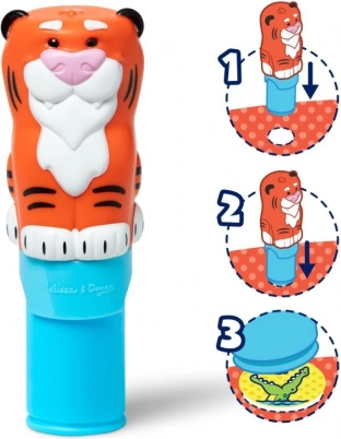 Stempel w kształcie rozbawionego tygryska pozwala dzieciom tworzyć wspaniałe naklejki za pomocą jednego przycisku. Wystarczy przyłożyć stempel do dowolnej powierzchni, a pojawi się kolorowa naklejka z motywami dżungli. Zestaw obejmuje aż 300 naklejek z motywami tygrysa i innych zwierząt z dżungli, co czyni go świetnym wyborem dla dzieci od 3 lat.