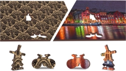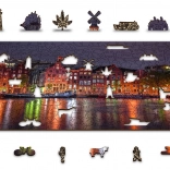 Te unikalne drewniane puzzle ucieszą każdego miłośnika układania. Dzięki laserowemu wycinaniu puzzle oferują gładkie krawędzie, które łatwo się łączą. Zawiera łącznie 150 elementów, z czego 30 ma unikalne kształty jak zwierzęta czy znane budowle, dodając edukacyjny element i jednocześnie wizualną estetykę. Puzzle są zaprojektowane jako 2w1, co oznacza, że można je układać według wyrafinowanego nocnego motywu Amsterdamu, jak i według wzoru na tylnej stronie.