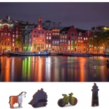 Odkryj świat zabawy z drewnianymi puzzlami Nocny Amsterdam marki WOODEN CITY. Dzięki swoim specjalnie ukształtowanym elementom, dwustronnemu motywowi i ekologicznemu wykonaniu układanie staje się prawdziwą przygodą.