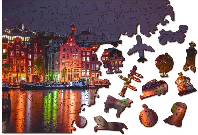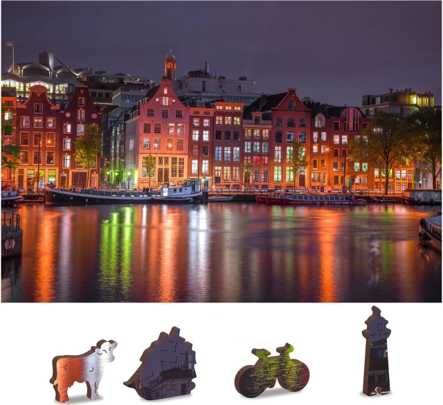 Każdy element jest częścią całości, ale ma także swój własny unikalny kształt przedstawiający miejskie budowle, zwierzęta lub przedmioty. Układanie jest tym samym bardziej wymagające, co przyczynia się do większej rozrywki i wyzwania. Puzzle zdobi również bogata sceneria Amsterdamu w nocy, która jest perfekcyjnie wyryta w każdym elemencie.