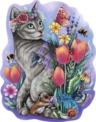 Drewniane puzzle Magiczny kot zachwycą miłośników jakościowych układanek i pięknej grafiki. Dzięki wycinaniu laserowemu elementy mają idealnie gładkie krawędzie bez drzazg i doskonale do siebie pasują. Specjalne elementy whimsies w kształcie tematycznych figurek sprawiają, że każde układanie jest wyjątkowym przeżyciem.