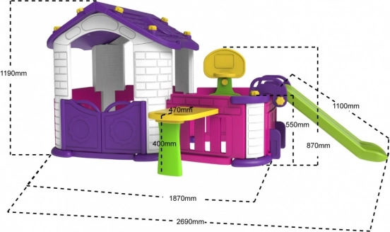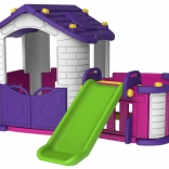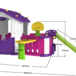 Ten przestronny domek oferuje dzieciom swobodę i kreatywność podczas zabawy. Duże otwierane drzwi i dwuwarstwowa bezpieczna zjeżdżalnia z szerokimi i solidnymi schodami zapewniają bezpieczeństwo. Ogródek jest objęty płotem i posiada schodki prowadzące do zjeżdżalni, co zapewnia większą interaktywność.