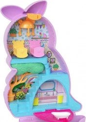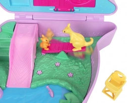 Kieszonkowy świat zabawy Polly Pocket w uroczej torebce w kształcie kangura skrywa składany domek pełen mini pokoików, zabawnych elementów i zwierzęcych przyjaciół. Dzięki paskowi na ramię zestaw jest łatwy do przenoszenia i idealny w podróży. W środku znajdziesz zjeżdżalnię, huśtawkę, basenik, tajemne jajko z pingwinem oraz akcesoria do opieki nad zwierzątkami – zabawy i wyobraźni nie zabraknie.