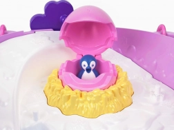 Dolna część zestawu to prawdziwy park rozrywki: dzieci pokochają zjeżdżalnię do wodnej części, huśtawkę oraz tajemnicze jajko, z którego „wygląda” uroczy pingwinek. Mały kangur dodatkowo skrywa drugi mini plac dla jeszcze większej frajdy. W opakowaniu znajdują się mini laleczki, zwierzątka i mnóstwo akcesoriów do opieki i karmienia.