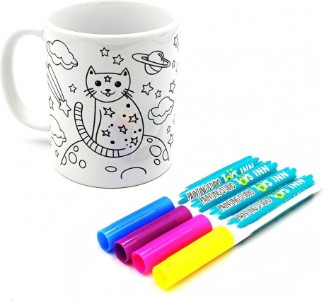 Ceramiczny kubek do kolorowania z motywem kota dla kreatywnej zabawy twoich dzieci.