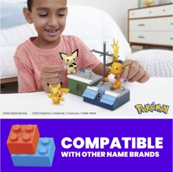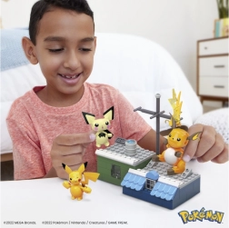 Zestaw zawiera wszystko, czego potrzeba do zbudowania Pikachu, Raichu i Pichu w ich naturalnym otoczeniu na dachu.