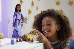 Poczuj magię filmu Disney Wish z lalką Asha z Rosas i bogatym zestawem akcesoriów do kreatywnej zabawy. Zestaw zawiera lalkę w charakterystycznej fioletowej sukni, urocze postacie Star i Valentino, książeczkę, torebkę oraz szal z miękkiego materiału. Valentino ma interaktywną funkcję – po naciśnięciu główki wysuwa język! Idealne do baśniowych opowieści, stylizowania fryzur i odgrywania scen z ulubionego filmu.