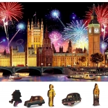 Drewniane puzzle Londyn nocą z fajerwerkami