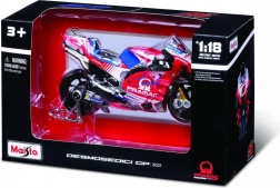 Ten szczegółowo wykonany model wyścigowego motocykla DUCATI PRAMAC bazuje na maszynie DESMOSEDICI GP. W skali 1:18 wyróżnia się wierną aerodynamiką, realistycznymi kołami i wysokiej jakości lakierowaniem w ikonicznym połączeniu czerwieni, błękitu i bieli. Idealny dla kolekcjonerów, fanów MotoGP oraz jako stylowa dekoracja.