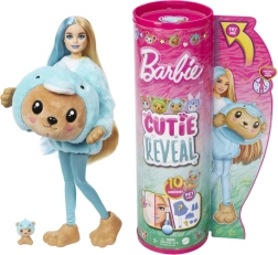Ten pełen zabawy zestaw z linii BARBIE Cutie Reveal łączy radość z rozpakowywania z wyobraźnią podczas gry. W środku znajdziesz lalkę BARBIE z długimi wielokolorowymi włosami i ruchomym ciałem, ukrytą w mięciutkim kostiumie misia przebranego za delfina. Po zdjęciu kostiumu odkryjesz stylową lalkę i akcesoria do nieskończonego miksowania stylizacji.