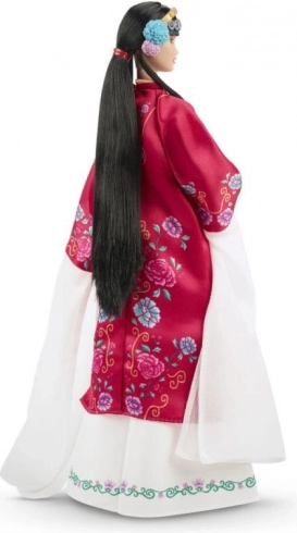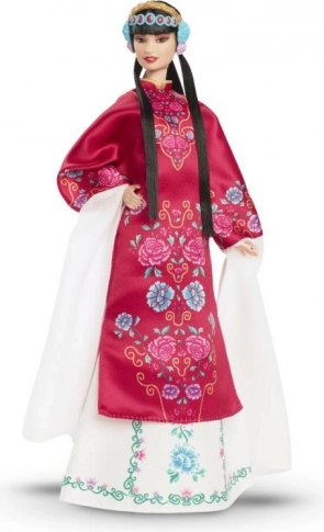 Ta wyjątkowa kolekcjonerska lalka BARBIE jest hołdem dla bogatego dziedzictwa kulturowego Chin. Blask czerwieni symbolizującej szczęście i pomyślność współgra z subtelnymi kwiatowymi detalami piwonii – kwiatu dobrobytu. Inspiracja Operą Pekińską widoczna jest w sukni, ozdobie głowy i akcesoriach, które nadają całości uroczysty i szlachetny charakter.