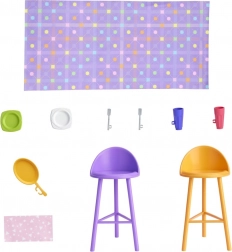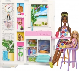 W zestawie znajduje się lalka BARBIE oraz 11 stylowych akcesoriów – naczynia, 2 krzesełka, ręczniczek i kocyk – które ozdobią wnętrze i wniosą do zabawy nowe pomysły. Motywy graficzne, takie jak segregacja odpadów, rośliny, panele słoneczne na dachu czy samochód elektryczny, w przystępny sposób uczą dzieci o ekologii.