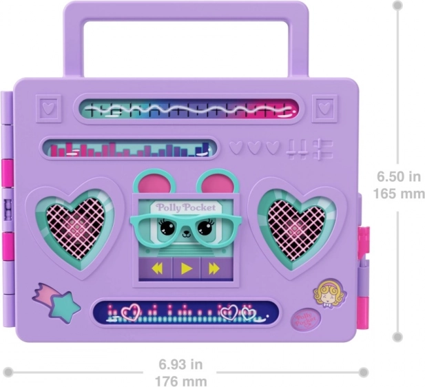 - Zestaw do zabawy boombox, lalka Polly (~7,5 cm), bluza Friend Clip, 16 akcesoriów, papierowa torebka rozpuszczalna w wodzie