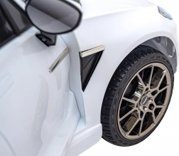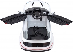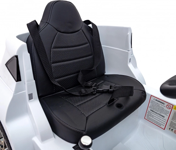 Dla maksymalnego komfortu zastosowano miękkie koła EVA, które tłumią nierówności, oraz szerokie siedzisko z ekoskóry z pasami bezpieczeństwa. Otwierane drzwi, światła LED z przodu i z tyłu oraz dopracowane wnętrze z kierownicą i panelem ucieszą małych kierowców i ich rodziców. Muzykę odtworzysz przez USB, MP3, Bluetooth lub radio, nie brakuje też klaksonu i przycisków dźwiękowych na kierownicy.