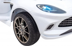 Licencjonowany samochodzik inspirowany modelem ASTON MARTIN DBX łączy luksusowy design z bezpieczną zabawą. Dzięki silnikom 4×25 W i akumulatorowi 12V/7Ah radzi sobie na chodniku i w ogrodzie, a płynny start (Soft Start) gwarantuje komfort bez szarpania. Rodzice mają pełną kontrolę przez pilot 2,4 GHz z 3 prędkościami i awaryjnym przyciskiem Stop.