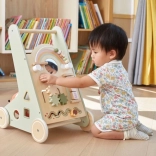 Solidna drewniana konstrukcja i gładkie kółka pomagają dziecku pewnie i bezpiecznie ćwiczyć chód oraz równowagę.