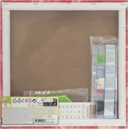 - Kompletny zestaw w opakowaniu: aplikator (piórko), tacka, wosk, zestaw błyszczących kryształków, zadrukowane płótno z legendą, drewniana rama 30 × 30 cm.