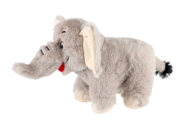 Dzięki wysokości 28 cm słoń jest idealny do zabawy w domu i w podróży.