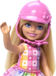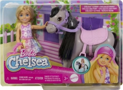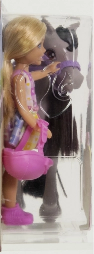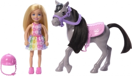 Zestaw do zabawy Barbie Chelsea na kucyku przynosi dzieciom mnóstwo radości i wyobraźni. Chelsea zakłada bezpieczny różowy kask, siada w wygodnym różowym siodle i dzięki zginanym kolanom oraz strzemionom wyrusza na stylową przejażdżkę. Szary kucyk z fioletowym ogłowiem, miękką grzywą i ogonem jest stworzony do pielęgnacji i delikatnego głaskania.