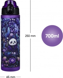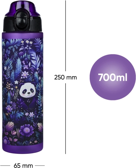 Stylowa i bezpieczna dla zdrowia butelka na napoje BAAGL o pojemności 700 ml z motywem Jungle Panda idealnie sprawdzi się do szkoły, na wycieczki i do sportu. Dzięki blokowanej pokrywce nie przecieka, praktyczna pętla ułatwia noszenie, a certyfikowany tritan bez BPA, PVC i ftalanów gwarantuje czysty smak napoju bez zapachu plastiku.