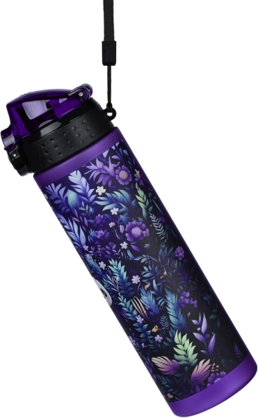 Butelka z wytrzymałego tritanu łączy bezpieczeństwo, funkcjonalność i zabawny design. Pokrywka flip-top z blokadą umożliwia szybkie picie jedną ręką, a uszczelnienie zapobiega wyciekom w plecaku. Przezroczysty korpus z podziałkami w ml pomaga śledzić dzienne nawodnienie.