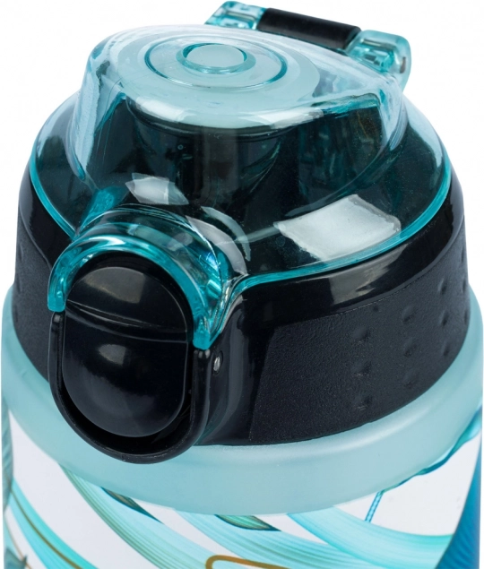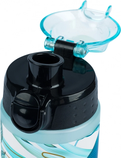 Blokowany klapowy korek z przyciskiem zapobiega przeciekaniu w torbie i umożliwia wygodne picie jedną ręką.
