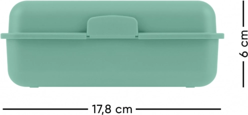 Pudełko jest wyposażone w prosty zamek, który zapewnia, że Twoje jedzenie pozostanie na swoim miejscu.