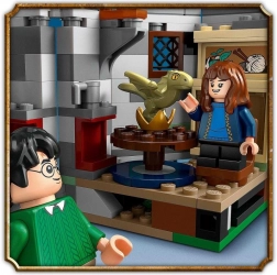 W zestawie jest pięć kultowych minifigurek – Harry Potter, Hermiona Granger, Ron Weasley, Draco Malfoy i Rubeus Hagrid – oraz dodatkowo figurki smoka Norberta i Kła. Nie zabrakło też 2 z 14 kolekcjonerskich portretów z HOGWARTU, które można powiesić we wnętrzu.
