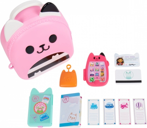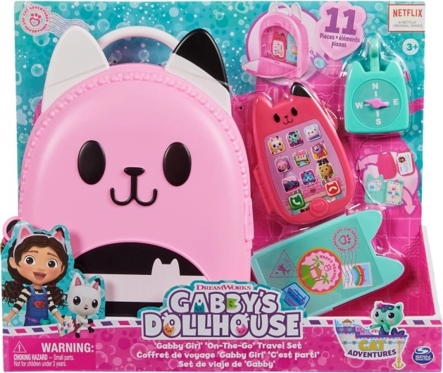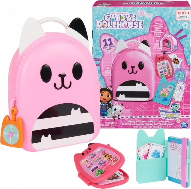 Przygotuj się na ekscytujące wyprawy z podróżnym zestawem Plecak. Ten 11‑elementowy zestaw to niezbędne wyposażenie dla fanów serialu DreamWorks Gabi’s Dollhouse, którzy lubią zabawy w odgrywanie ról. Zawiera zabawkowy telefon komórkowy, który można złożyć i w którym zmieści się koci brelok, identyfikator Gabi, brelok z kompasem, podróżny portfel mieszczący zabawkowy paszport i bilety oraz superurocze pudełko na zabawki w kształcie kotka ze specjalnymi uchwytami, do którego wchodzą wszystkie wspaniałe zabawki z przedszkola. Każdy element zestawu został wykonany z autentycznym wzornictwem i stylem, dzięki czemu wygląda dokładnie jak podróżne akcesoria Gabi z serialu. Dzieci pokochają bieganie po domu i udawanie, że podróżują po świecie tak jak Gabi. Dla jeszcze więcej emocjonujących przygód poszukaj aparatu, który również mieści się w pojemniku, aby bawić się w robienie zdjęć podczas podróży (aparat sprzedawany oddzielnie). Aby odkryć ostatnią niespodziankę, zeskanuj kod QR na opakowaniu zestawu podróżnego i uzyskaj dostęp do bezpłatnej aplikacji Gabi’s Dollhouse (dostępna na iOS i Android). Maskotki, lalki, figurki i zestawy Gabi’s Dollhouse to idealne zabawki dla dziewczynek i chłopców, którzy lubią korzystać z wyobraźni i tworzyć własny świat domków dla lalek, więc przygotuj się na nieskończone przygody z podróżnym zestawem Gabi.