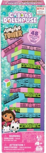Gabinin magiczny domek: chybotliwa wieża to gra, która oferuje zabawę i emocje dla dwóch i więcej graczy. Waszym zadaniem jest wyjmować klocki z wieży i układać je na szczycie, tak aby wieża nie upadła. Wygrywa ten, kto jako ostatni pomyślnie wyjmie klocek przed zawaleniem się wieży.
