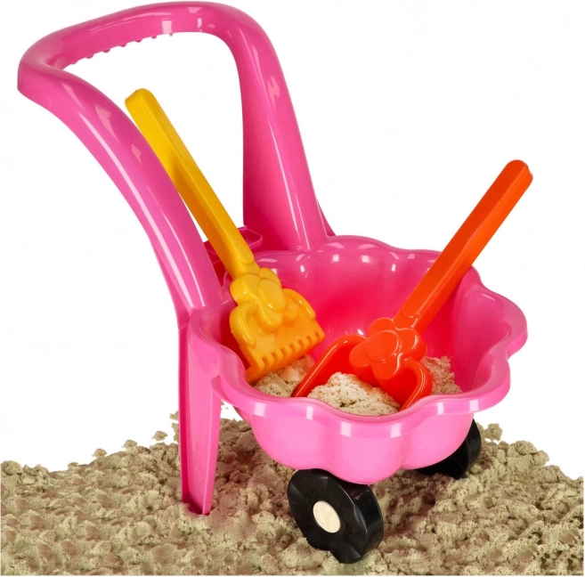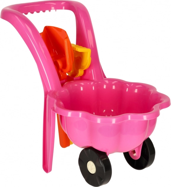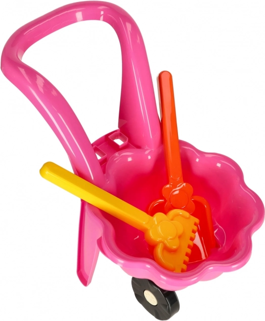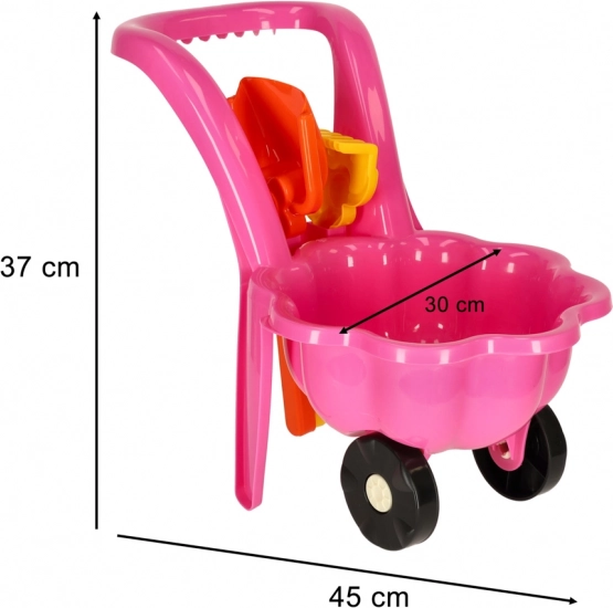 W opakowaniu znajdziesz taczkę, łopatkę i grabki – wszystko, czego dziecko potrzebuje do budowania zamków i przenoszenia skarbów.