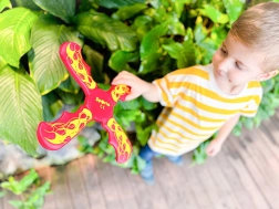 Dzięki wytrzymałemu materiałowi i rzucającemu się w oczy designowi bumerang świetnie sprawdzi się na rodzinnych wycieczkach, w ogrodzie i w parku. Wspiera ruch, precyzję i koordynację ręka‑oko, a przy tym pozostaje zabawką dającą frajdę całej rodzinie.