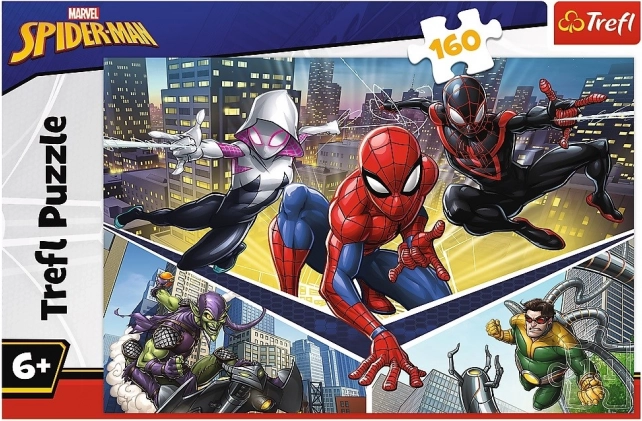 Te puzzle z motywem Spider-Mana zawierają 160 elementów, a po ich ułożeniu powstaje obraz o wymiarach 410x275 mm. Puzzle ilustrują Spider-Mana, jego przyjaciół i wrogów.