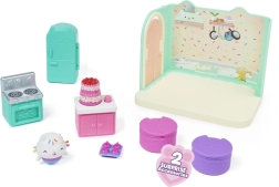 Postaw Łakotka na szczycie tortu, naciśnij przycisk i zobacz wirujące tortowe show – świetne do opowiadania historii i rozwijania wyobraźni. Zestaw można łączyć z innymi pokojami Deluxe i włożyć do GABI – Domku ze światłami i dźwiękami (sprzedawany oddzielnie).