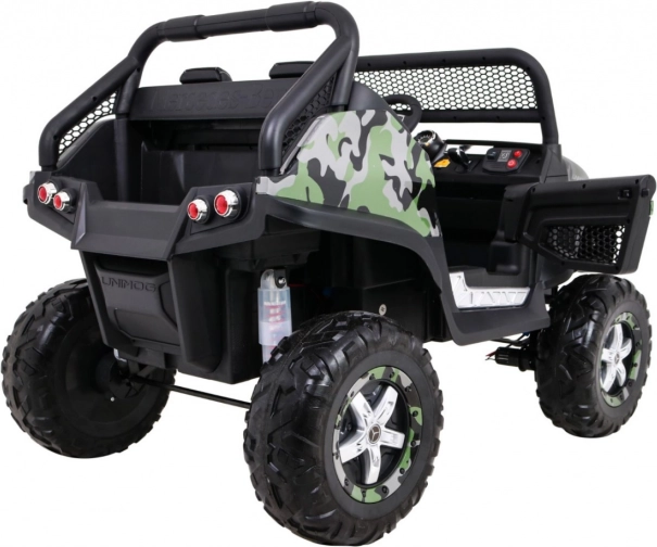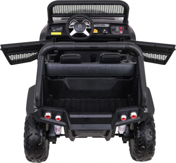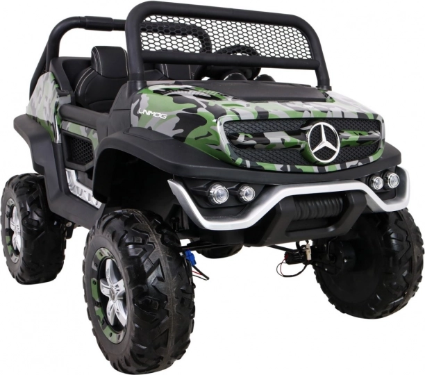 Unimog dla dzieci jest wyposażony w cztery mocne silniki, które gwarantują płynną jazdę nawet po nierównościach. Dzięki gniazdom MicroSD, USB i łączności Bluetooth dziecko może słuchać ulubionej muzyki podczas jazdy.
