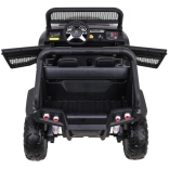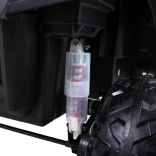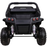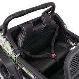 Pasy bezpieczeństwa i wygodne siedzisko z ekoskóry zapewniają komfort i ochronę. Samochodzik posiada światła LED oświetlające drogę z przodu i z tyłu, a dodatkowo wyposażony jest w regulowane tylne zawieszenie, które ułatwia pokonywanie przeszkód.
