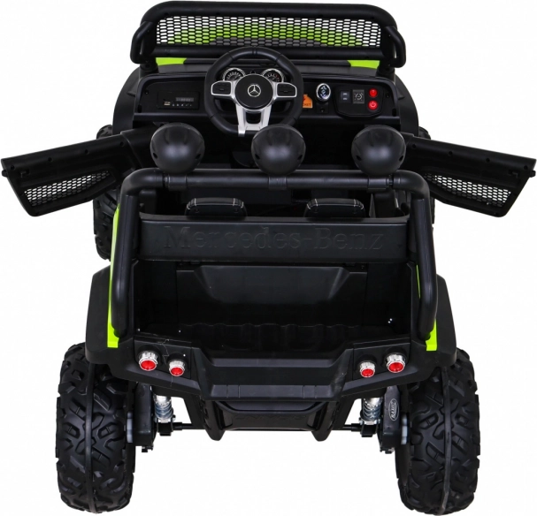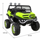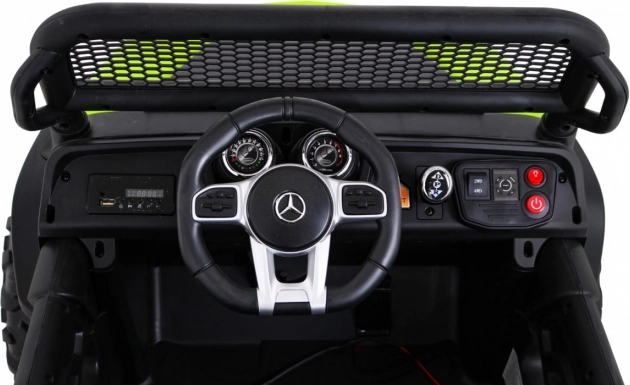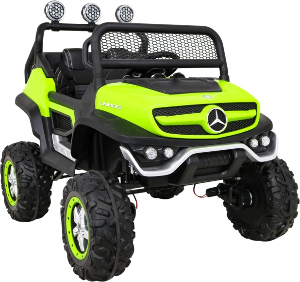 Unimog od Mercedes-Benz jest przeznaczony dla dzieci, które kochają przygody i jazdę w terenie. Dzięki czterem mocnym silnikom o mocy 35 W oraz regulowanemu zawieszeniu samochód staje się idealnym towarzyszem każdej zabawowej wyprawy.