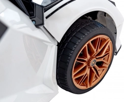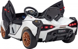 Elektryczny samochodzik Lamborghini Sian został zaprojektowany z myślą o maksymalnej frajdzie i bezpieczeństwie. Dwa przednie silniki 18 W oraz dwa tylne 35 W zapewniają płynną i niezawodną jazdę, a płynny start chroni dziecko przed szarpnięciem przy ruszaniu. Światła LED z przodu i z tyłu oraz ikoniczny design z unoszonymi drzwiami tworzą autentyczny wygląd supersamochodu.