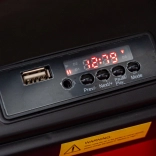 - MP3, wbudowane melodie, wejście USB, wejście AUX, przyciski melodii i klakson w kierownicy