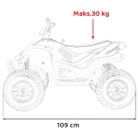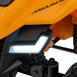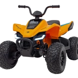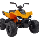Stylowy dziecięcy elektryczny quad McLaren oferuje moc, komfort i bezpieczeństwo dla małych kierowców. Dzięki napędowi 4×35 W, akumulatorowi 12 V 10 Ah oraz płynnemu startowi poradzi sobie także w nierównym terenie. Duże koła EVA o średnicy 31 cm i amortyzacja zapewniają cichą i stabilną jazdę, a światła LED oraz panel audio MP3/USB/AUX dbają o rozrywkę. Rodzice docenią pilot 2,4 GHz z trzema prędkościami i awaryjnym przyciskiem STOP.